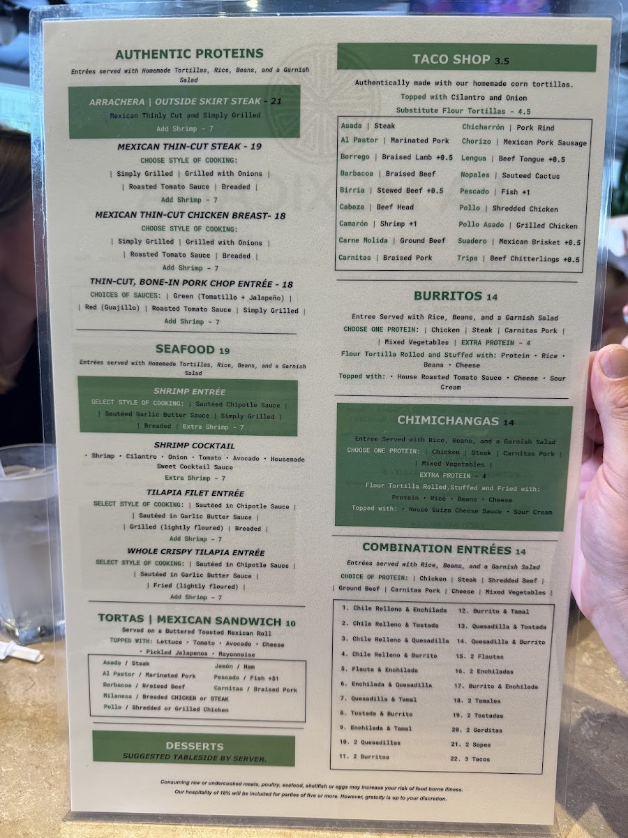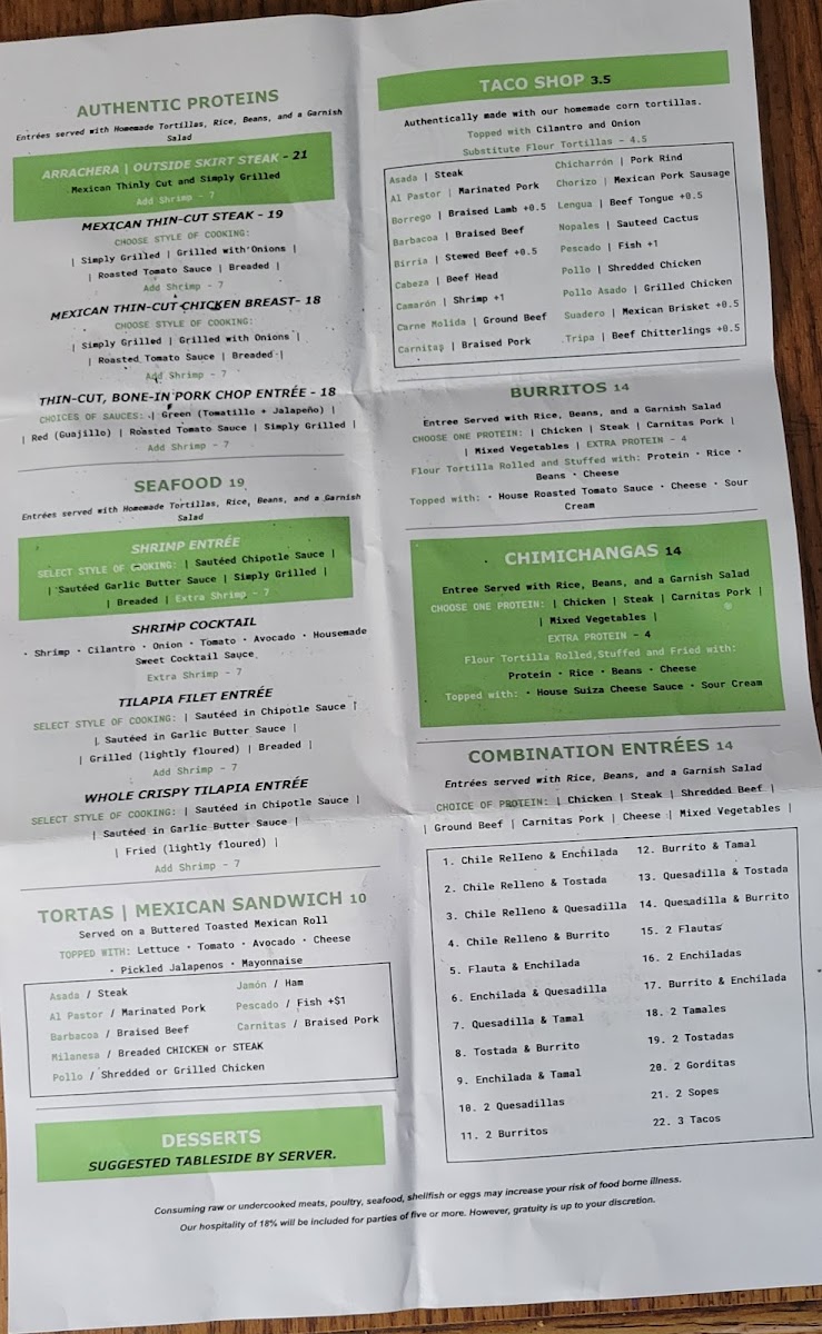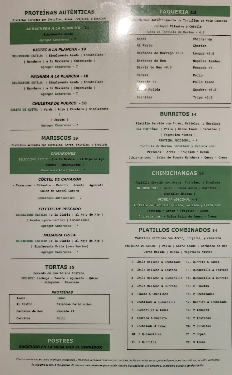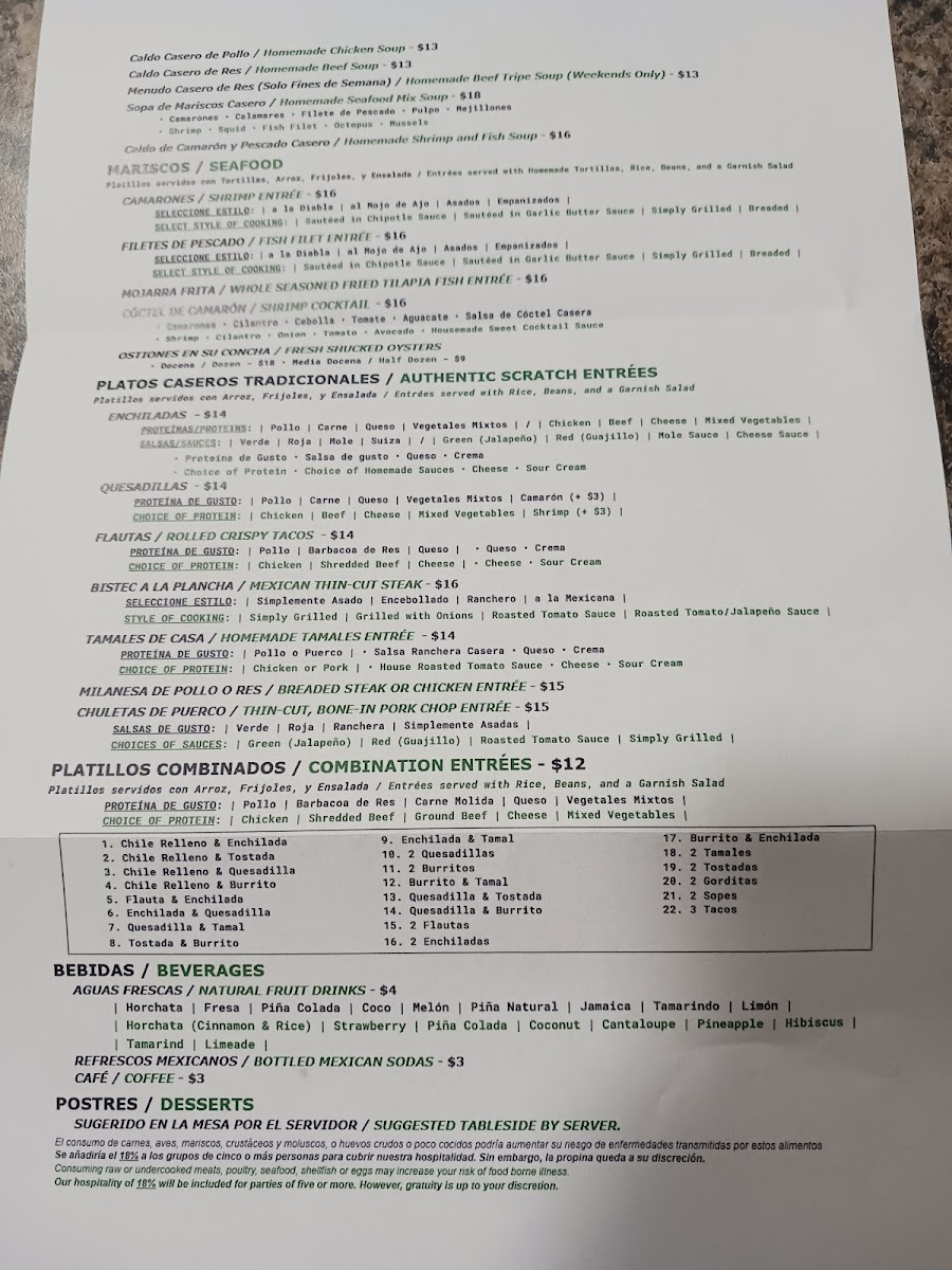 Entrées served with Homemade Tortillas, Rice, Beans, and a Garnish Salad