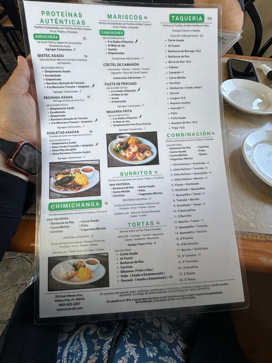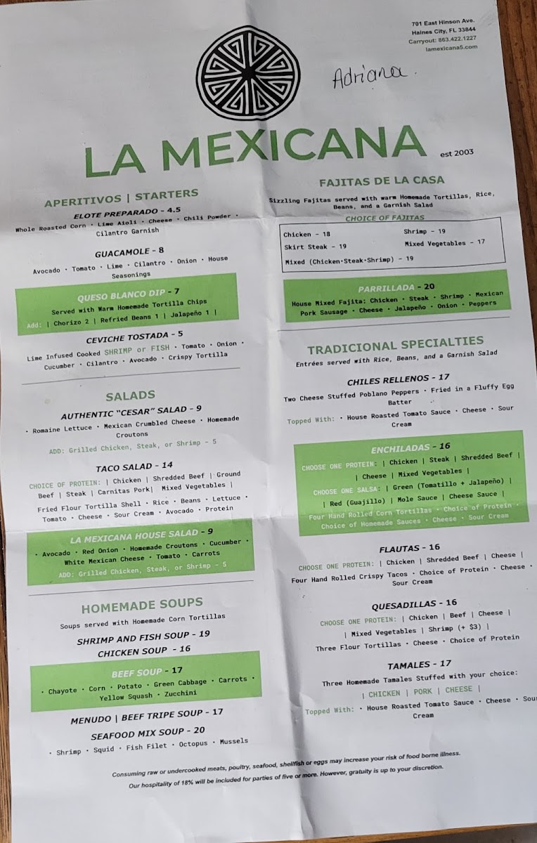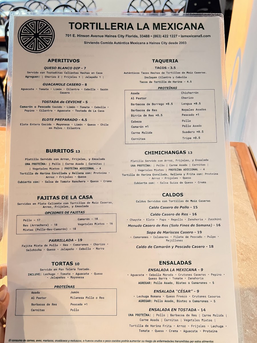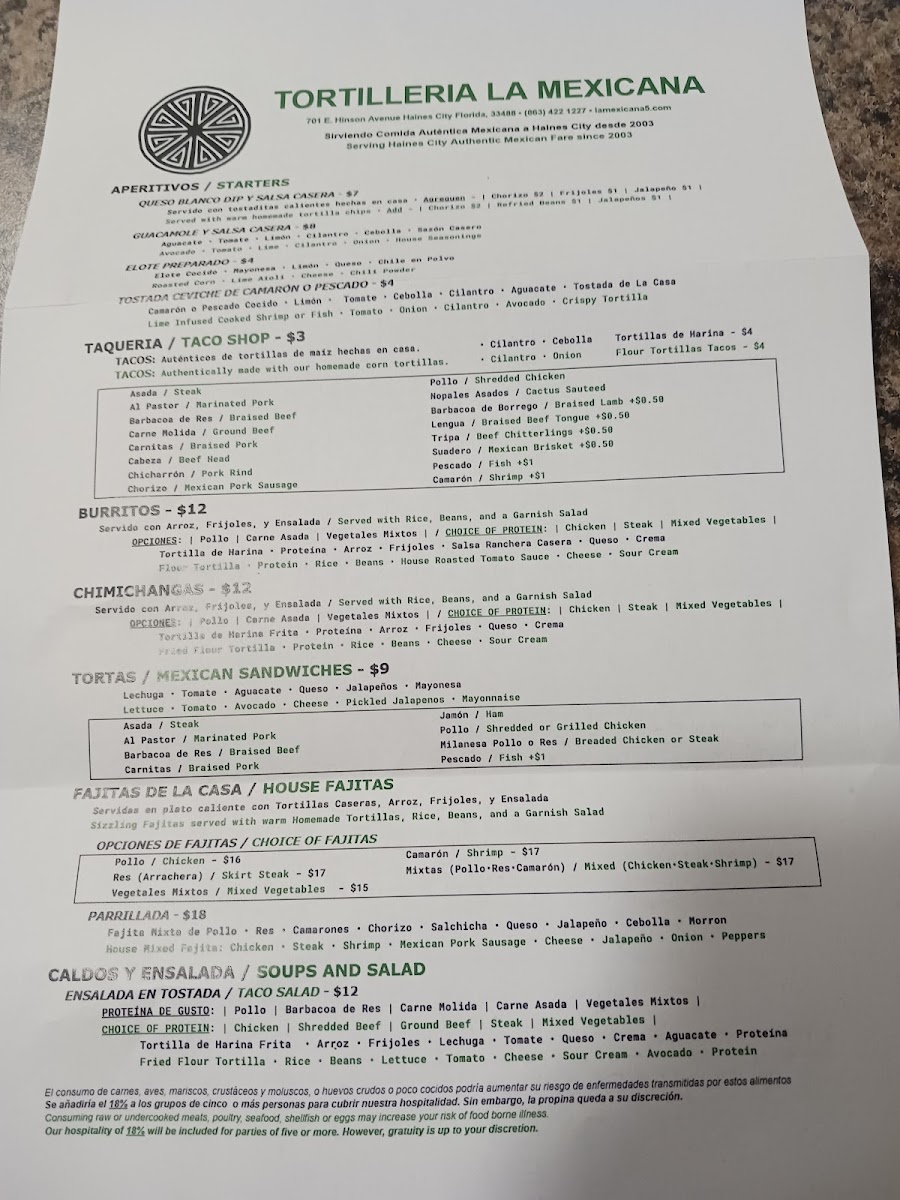 Entrées served with Homemade Tortillas, Rice, Beans, and a Garnish Salad